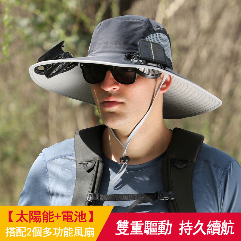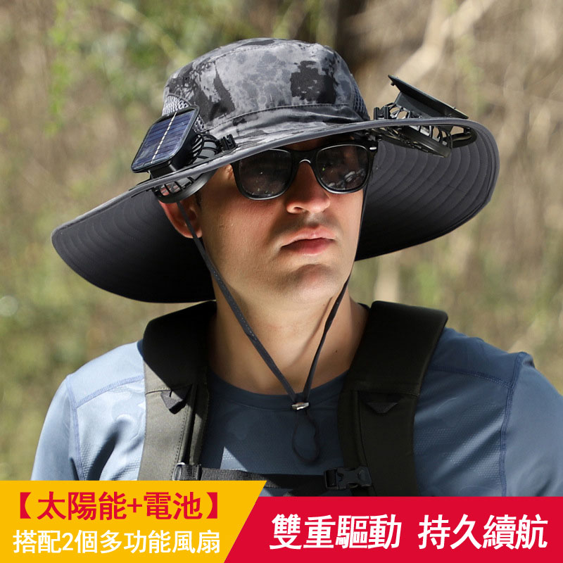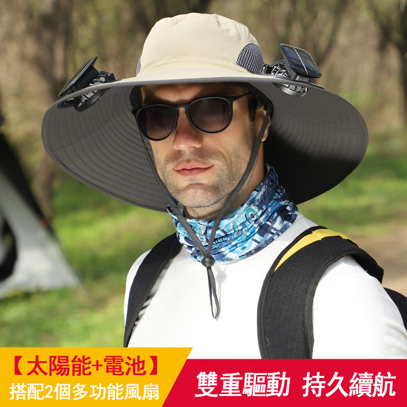 【太陽能款雙風扇漁夫帽】炎炎夏日清涼必備!!!太陽能供電,無需電池,環保又便捷!高品質面料,透氣舒適,防曬防紫外線!360度全方位降溫設計,無懼炎熱陽光,時尚與功能兼具,釣魚、爬山、戶外活動的最佳搭檔!!!讓您戶外出行更自在清涼!!