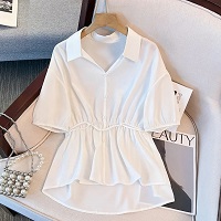 2025新款【高品質V領收腰襯衫】收腰捏褶設計,遮肉顯瘦又高級,前短後長不挑身材,百搭不過時,誰穿都精緻有氣質!