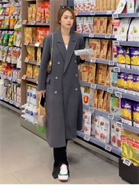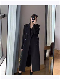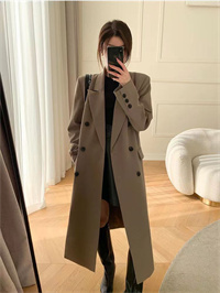 高級感風衣外套女中長款2024秋冬新款氣質雙排扣西裝領長款外套