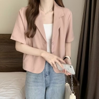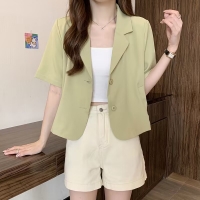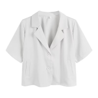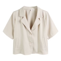 優雅隨行 自信綻放 女士短袖西裝小外套 簡約剪裁勾勒職場魅力 輕盈透氣 讓每一步都從容有型