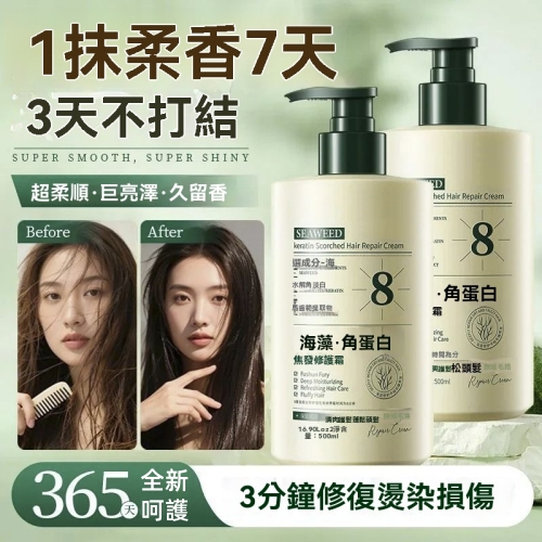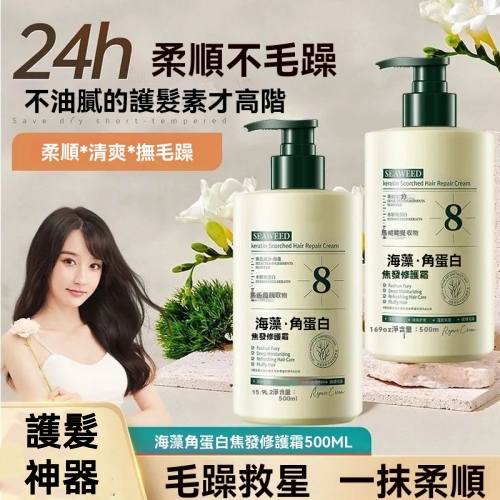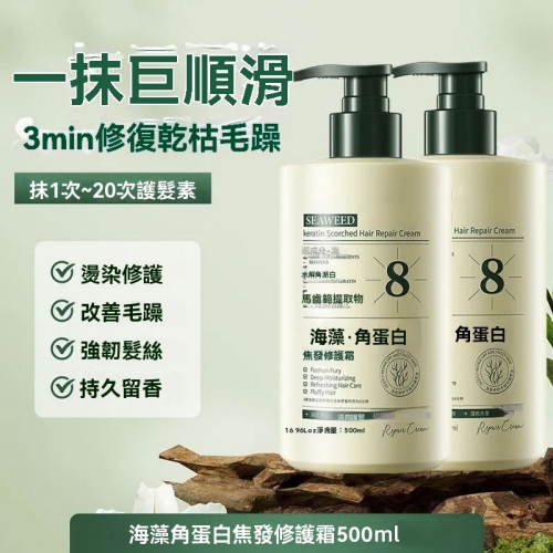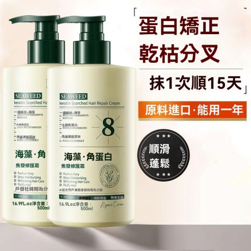 海藻護髮角蛋白 髮絲受損乾枯 海藻精粹注入角蛋白 深度修護毛鱗片 重塑強韌發芯 讓秀髮告別脆弱 重獲新生力量