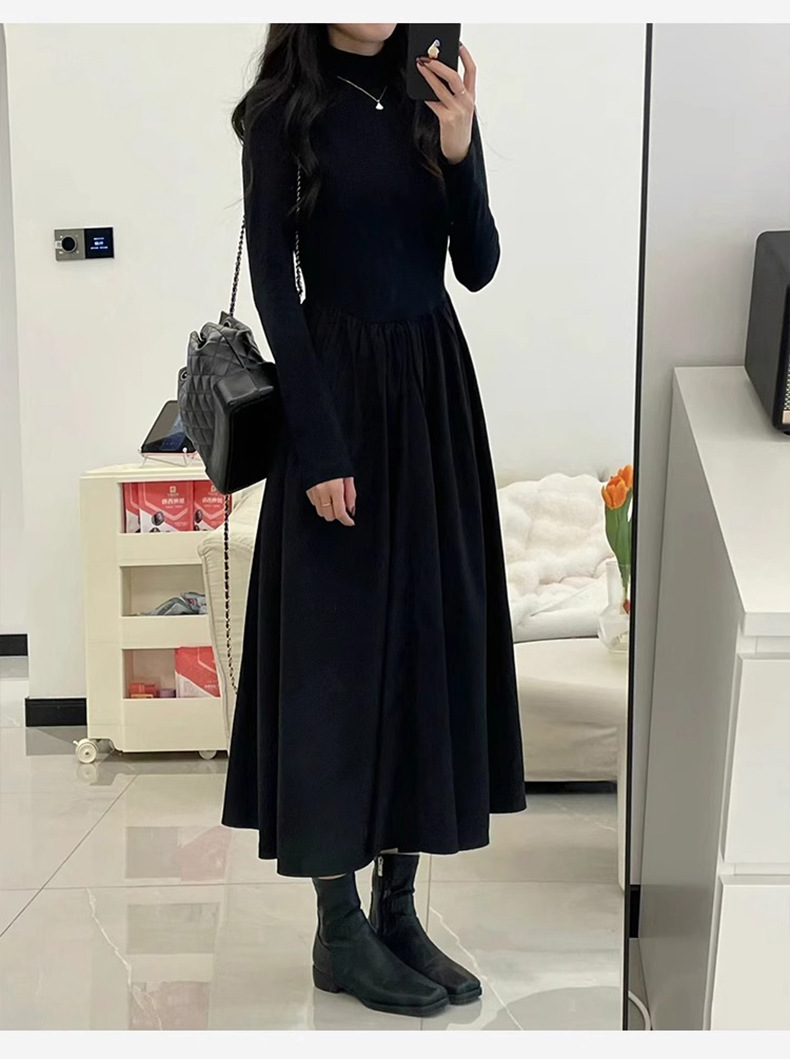 2024新款秋冬季赫本風連衣裙女 高級搭配大衣內搭打底半高領連衣裙