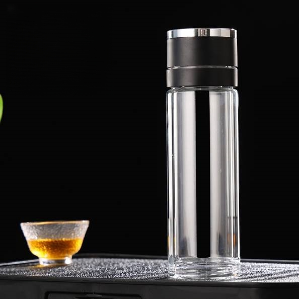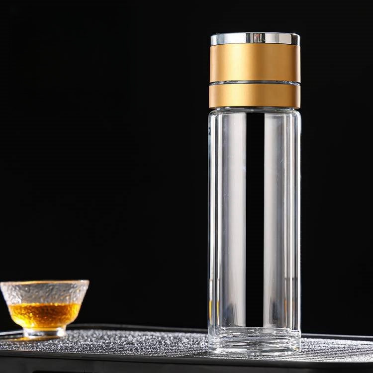 一鍵開蓋茶水分離杯車載水杯高硼矽雙層玻璃杯辦公室男士泡茶杯子