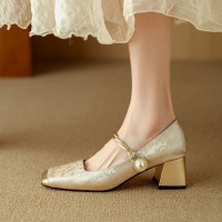 一字帶瑪麗珍鞋 方頭拼色 珍珠添韻 粗跟承優雅 國風與法式浪漫交織 每一步皆為風景
