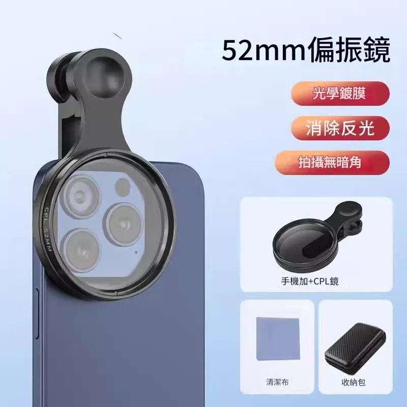 [1]【新品體驗】1入組-NT$899 四件套【CPL偏振鏡+手機夾+清潔布+收納包】