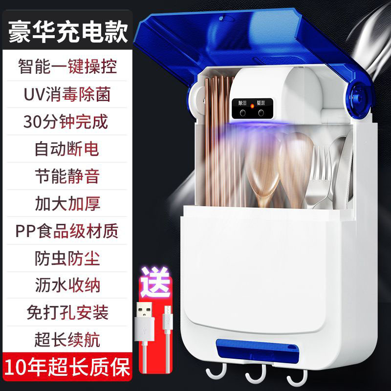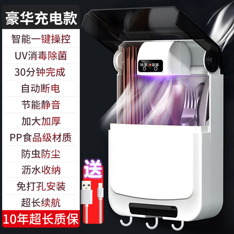 家用高顏值廚房好物掛壁式免打孔消毒烘乾筷子籠智能收納盒