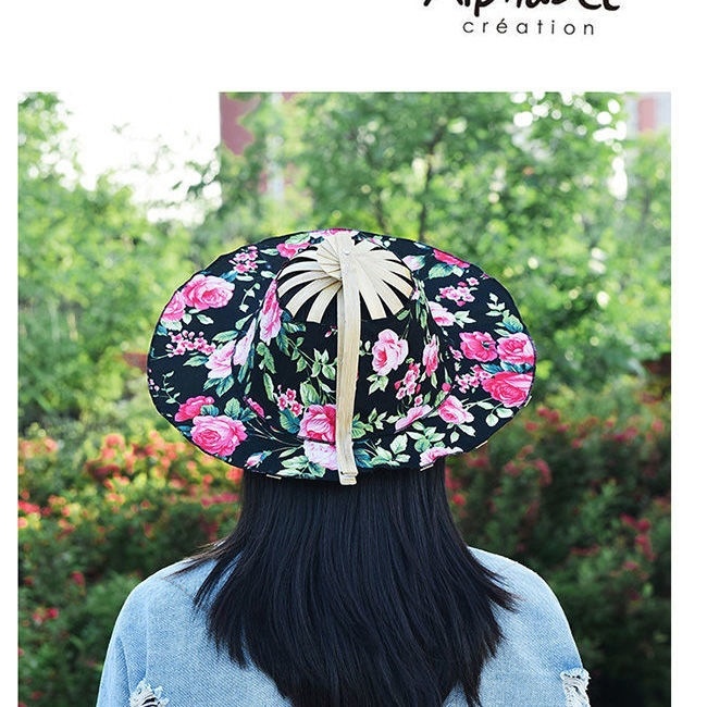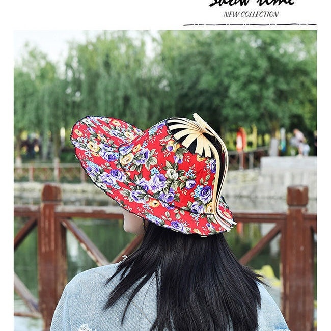 竹扇帽子摺疊便攜百搭沙灘帽 遮陽帽女生夏天 防曬太陽帽摺扇帽子