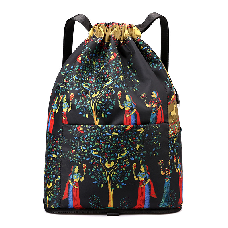 戶外旅行可折疊抽繩雙肩包,防水尼龍面料,折疊起來巴掌大,不佔空間,拉開即大容量特能裝!