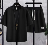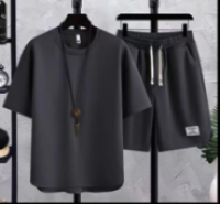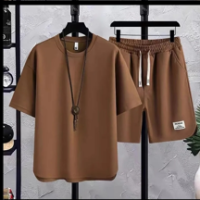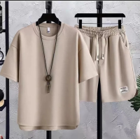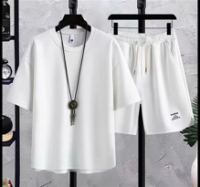 男士冰絲純色休閒運動套裝