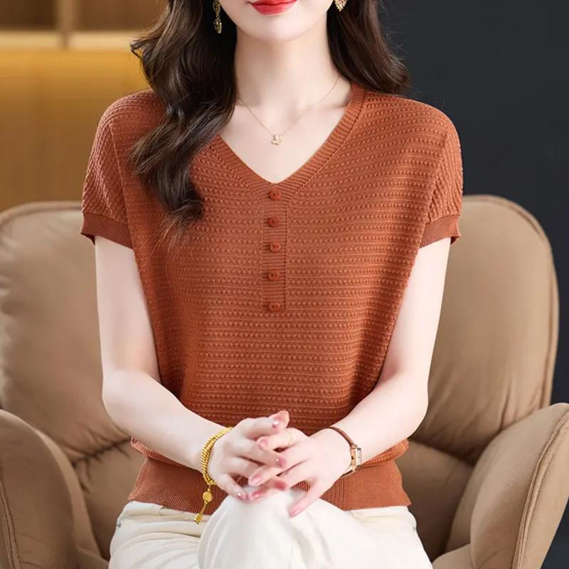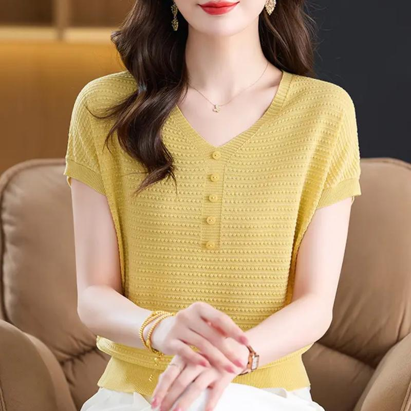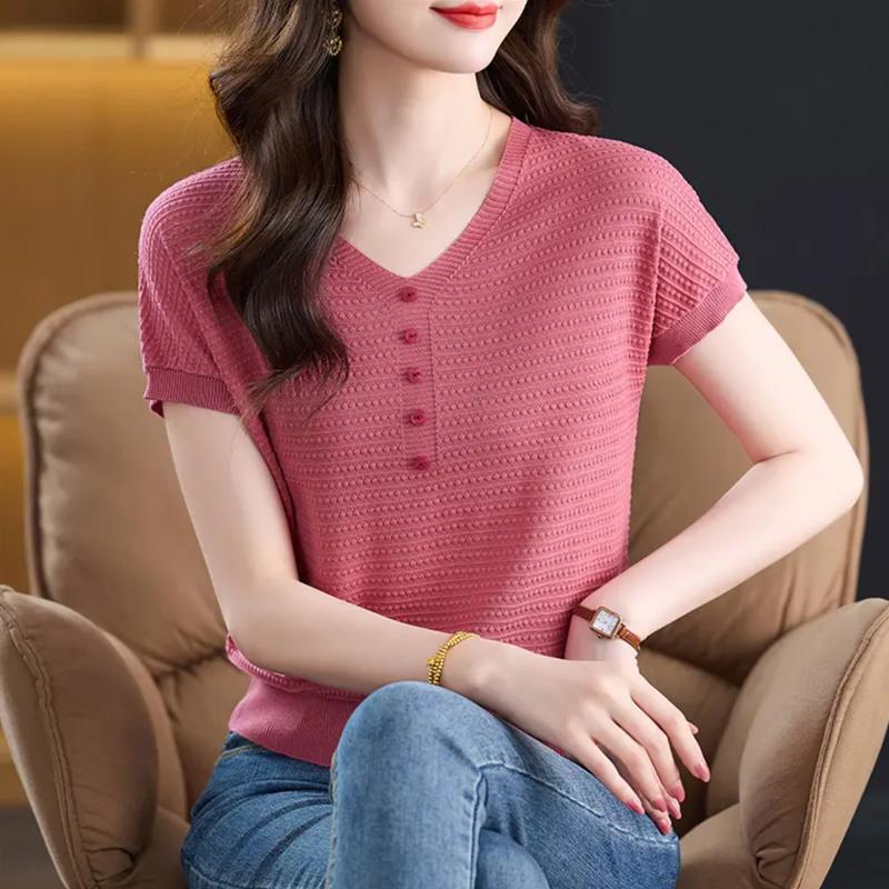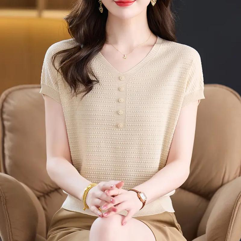 獨特漂亮夏季薄款氣質女士裝短袖T恤2025新款時尚減齡好看針織衫