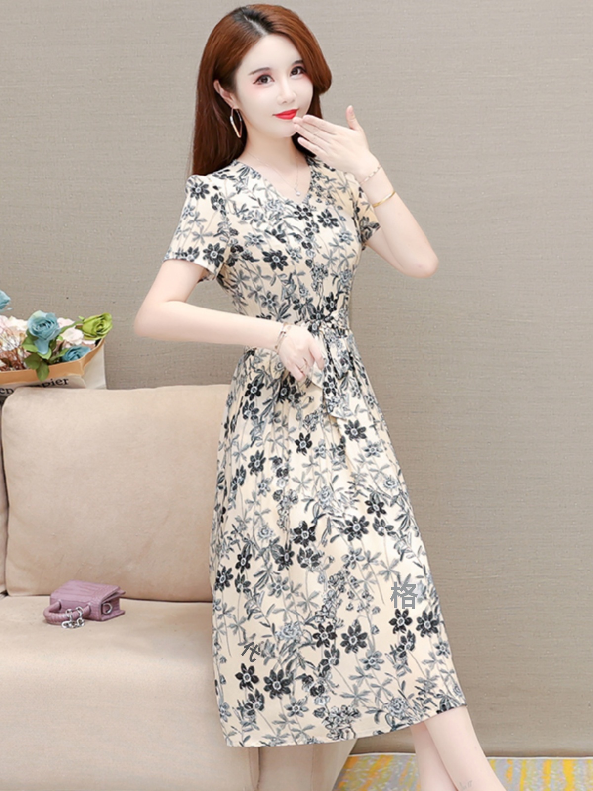 冰絲面料邂逅清新碎花 輕薄透氣觸感涼滑 V領設計優雅修飾臉型 夏日穿著體驗極致舒適與清爽