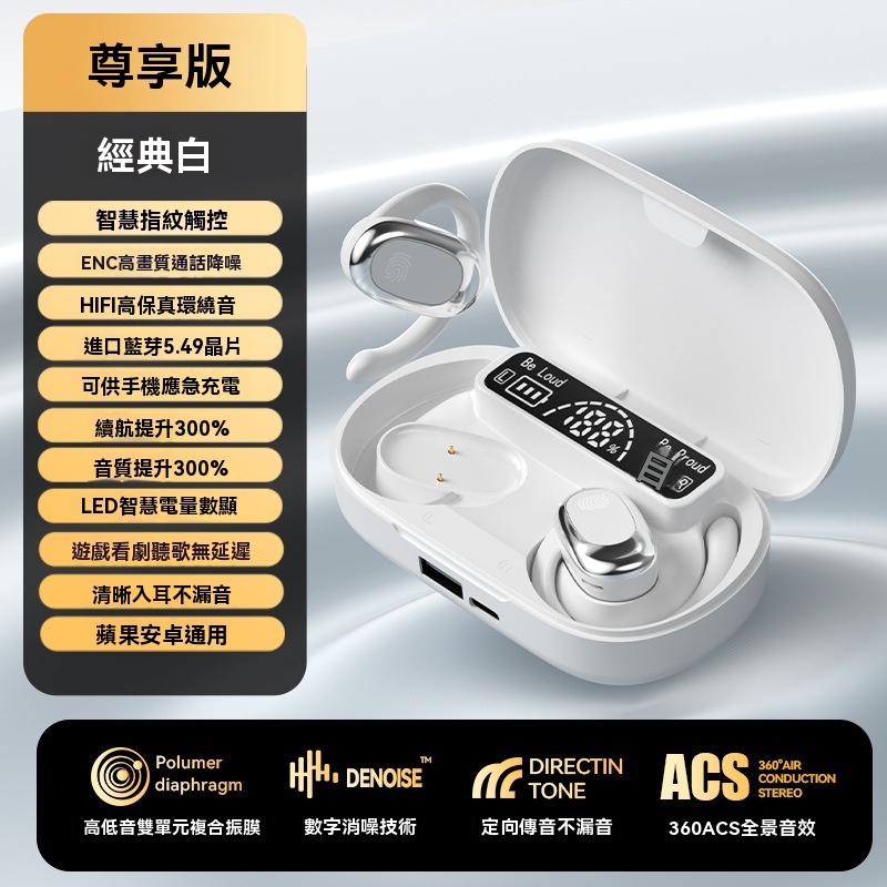 【可為手機充電】零感佩戴技術耳機輕若無物 獨特耳掛設計運動不掉落 內建2000毫安行動電源 隨時為手機續航